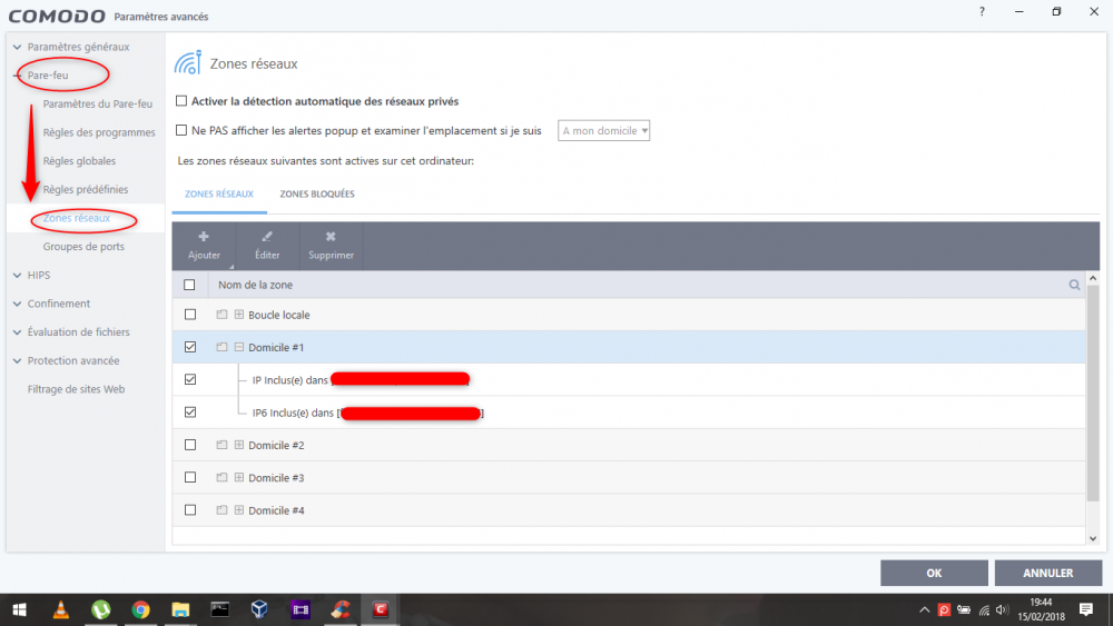 Bonsoir, Voila ce qu'affiche le pare-feu COMODO quand on rentre dans les paramètres avancés du logiciel : Il semblerait qu'effectivement, des règles puissent-être édité sur les réseaux locaux. Je vous invite à télécharger ce pare-feu et vous faire votre propre avis sur la question (ce logiciel est gratuit et relativement efficace après un rodage ) ! COMODO FIREWALL. Cordialement, MateLeot. -