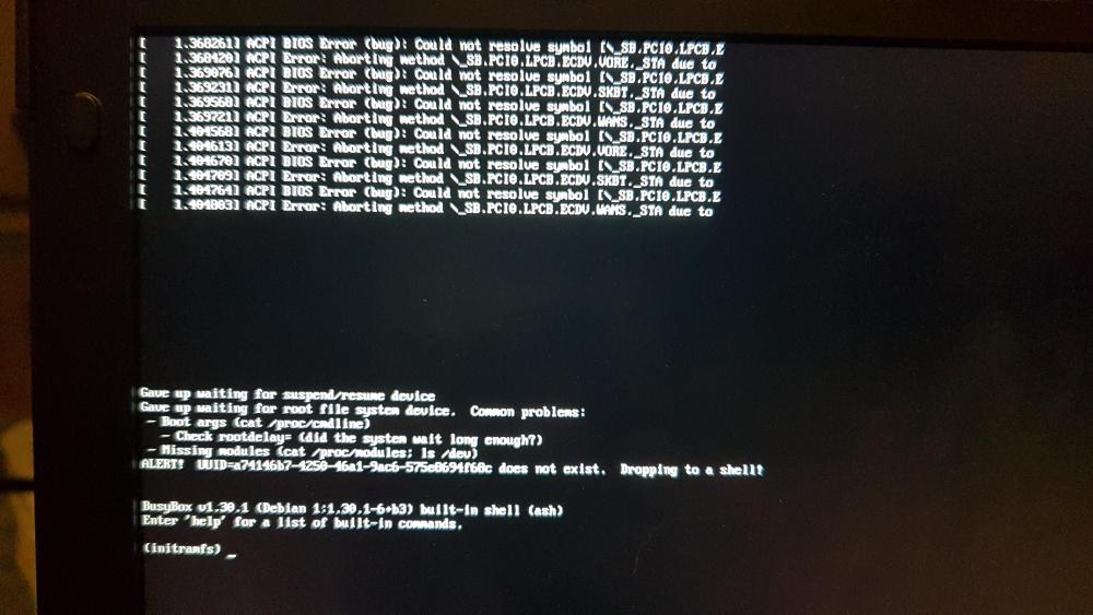 4. Bonjour, Je suis tout nouveau sur ce forum. J'utilise Windows parce qu'il le faut et linux parce que j'aime ça. Objectif : installer debian 11 en dual boot avec windows 10 (déjà installé). Caractéristique pc : dell 5420 Rugged / 64 bits / 32Go RAM HD SSD 1 To / Partition GUID (GPT) le bios et les drivers sont à jour j'ai partitionné mon HD pour réserver une place de 50 Go à Debian Symptôme / problème : je dois passer le Bios en Legacy (vs UEFI) sinon, durant la phase d'installation, le processus ne détecte pas les disques (il ne détecte que la clef USB de l'iso). durant le processus d'installation, juste après avoir choisi Graphical Installation, j'ai le message d'erreur suivant : Cf. premier screenshot Une fois l'installation faite, je repasse le Bios en UEFI je reboot et j'ai les messages d'erreur suivants : Cf. deuxième screenshot Sur la BusyBox (initramfs) ls > bin conf dev etc init lib lib32 lib64 libx32 proc root run sbin scripts sys tmp usr var Il manque des directories... Mauvais signe. (initramfs) dmesg Trop long pour être retranscrit ici. (initramfs) dmesg > /tmp/outputdmesg.txt Je branche une clef usb (initramfs) mkdir /media (initramfs) mkdir /media/usb (initramfs) mount /dev/sda/ /media/usb > mount : mounting /dev/sda on /media/usb failed:No such file or directory Du coup, je suis bloqué. Je n'ai sais pas comment faire un diagnostic complet et sérieux. Les outils/commandes que je connais pour ça et qui fonctionnent habituellement, ne répondent pas dans le cas présent. Avez-vous déjà rencontré ce type de problème ? Ca vient très certainement de mon PC (j'ai téléchargé 2 iso différents (debian-11.2.0-amd64-DVD-1.iso et firmware-11.2.0-amd64-netinst.iso), j'ai vérifié à chaque fois la sumsha256, j'ai utilisé Etcher et Rufus, j'ai utilisé 2 clefs USB différentes) mais comme il est à jour, je ne sais plus quoi faire. J'ai recherché sur le Net, je n'ai trouvé aucune solution probante. Merci de votre aide. Bscope.