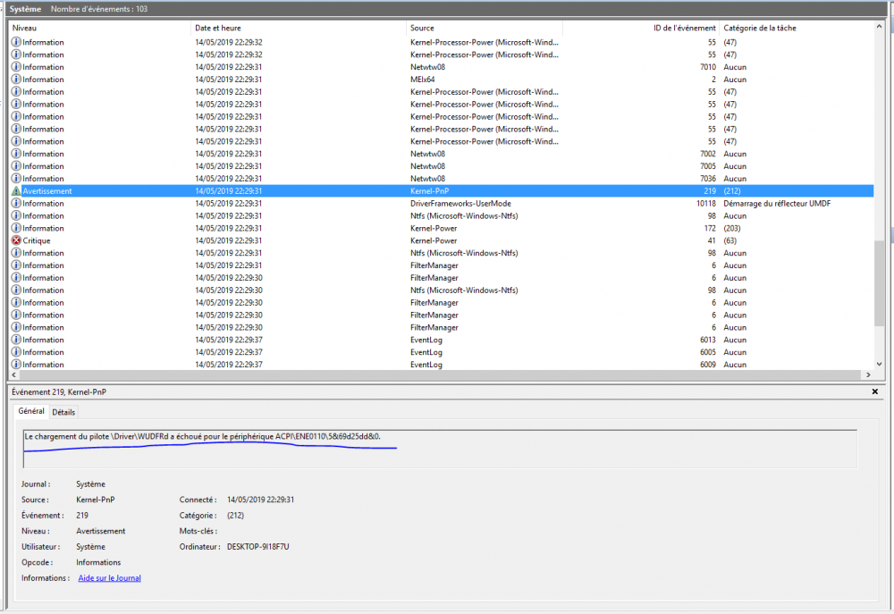 5. Ok , je testerai demain. Parcontre j'ai fais un tour dans le journal d'erreur et ai trouvé ça pour le blue screen de 22h30... Qu'en penses -tu ? Ce serai peut être ce driver ci qui cause tout les problèmes ? Mais comment savoir à quoi il est lié ? Quel est ce driver ?
