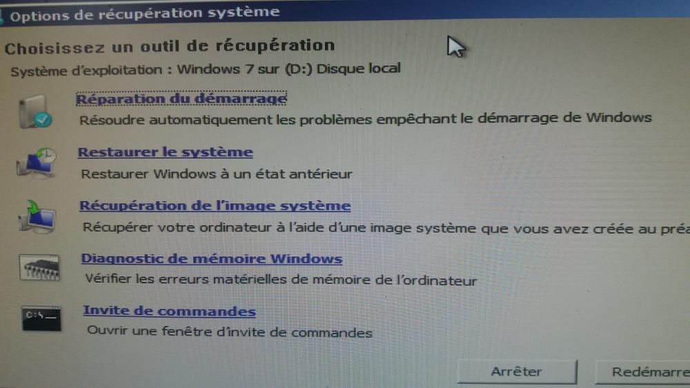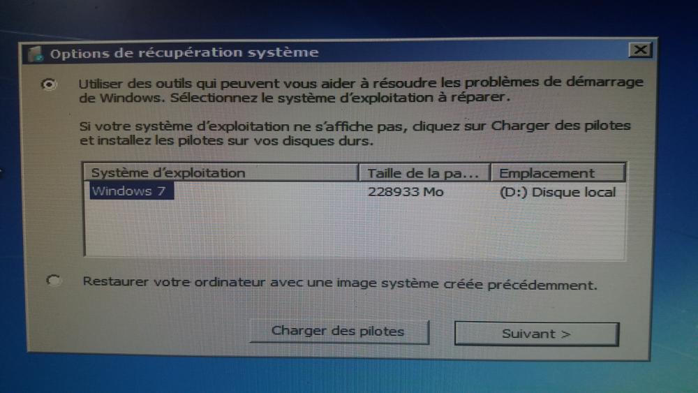 Quand je clique sur réparer l'ordinateur une fenêtre ou je peut choisir le lecteur avec Windows déjà installer dessus apparaît afin de le réparer, mais quand je clique sur suivant je retombe sur la fenêtre "option de récupération système" ou la plupart des options ne marche pas