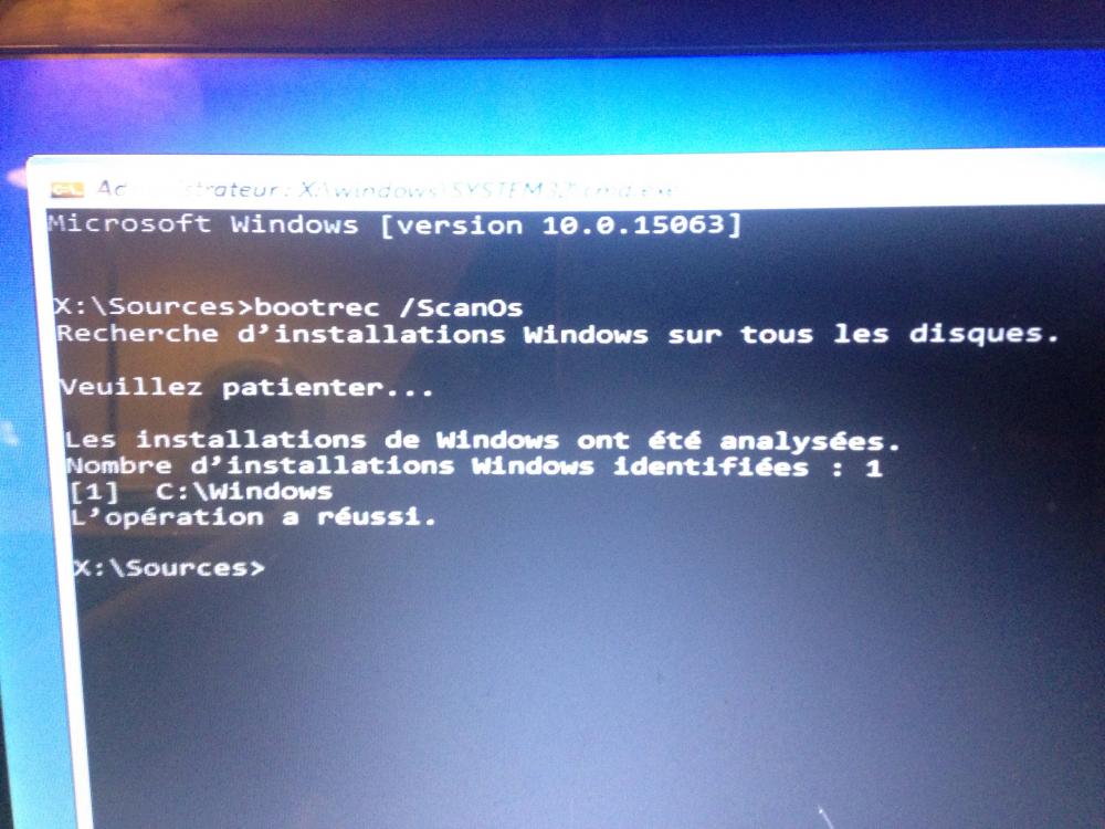 3. Désolée de répondre un peu tard je vais essayé "le poisson clown" resultat nombre d'installation Windows : 1 C:\windows loperation a réussi merci d'avance de votre aide