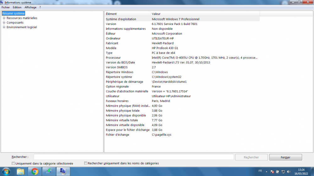J'ai suspecté que le disque avait un problème. Donc j'ai fait un chkdsk c: /f et ensuite j'ai essayé de réinstaller le système d'origine avec HP Recovery mais ça n'a pas marché.