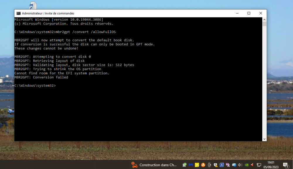 @Calisto06 Bon, il faut que je mette Windows sur ce nouveau PC, je vais donc le ré-installer complétement et j'arrête donc les essais avec mbr2gpt. Un grand merci à toi Calisto06 pour toute cette aide ainsi qu'à Longaripa, ces tentatives n'auront pas été vaines car j'aurai appris des choses entre autre l'existence de MPW