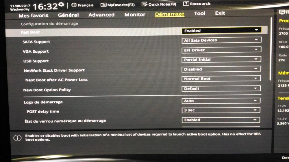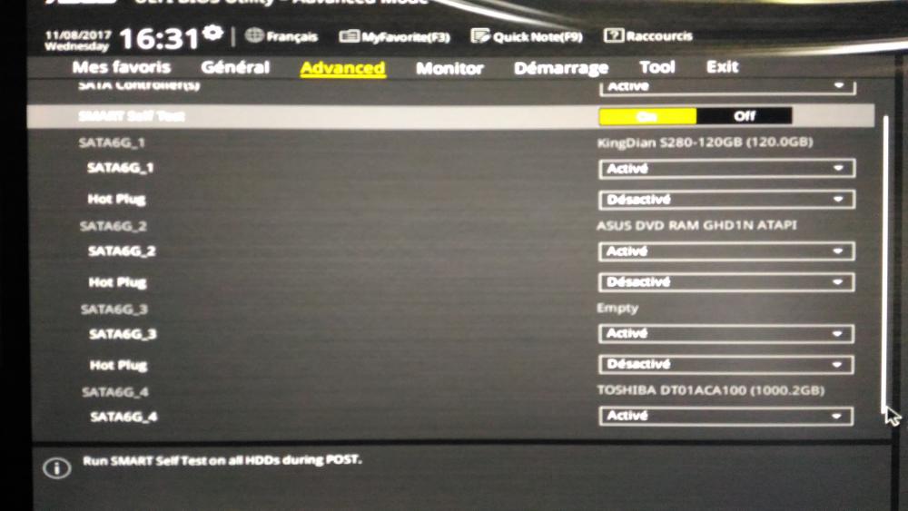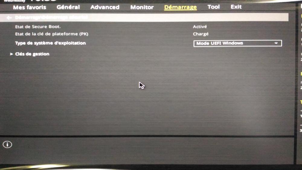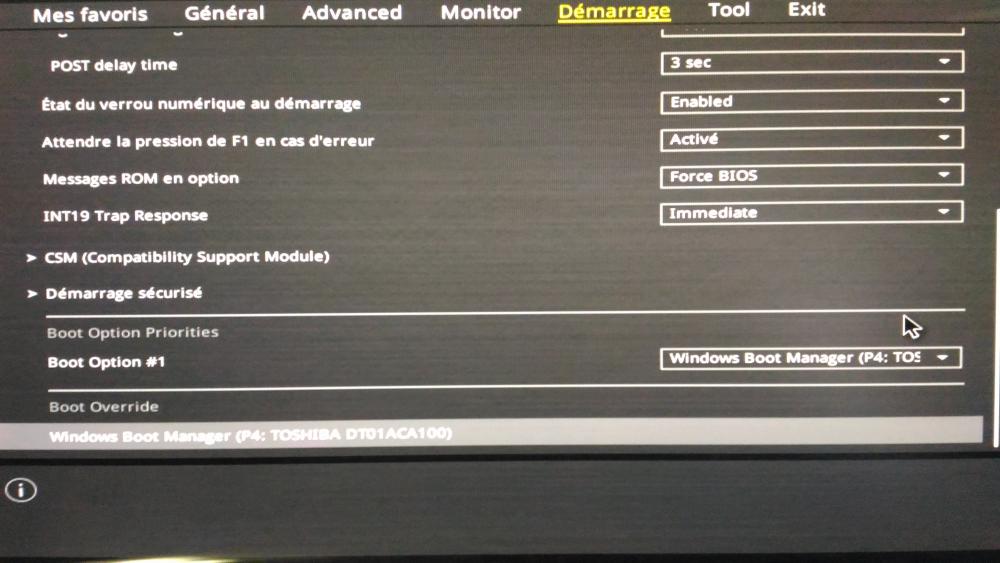 je vien vers vous car je suis totalement perdu, je possédé une tour ASUS acheter en début d année avec comme config i5 6400, 8go ram ddr4, dd 1to, carte graphique gtx950.j ai acheter il y a quelque jour un ssd afin de passer Windows dessus. installation sans souci dans le boitier c est la suite qui se complique. ma carte mere a un bios uefi hors dans les paramètre le ssd et reconnu mais dans les option de boot seul le 1 to d 'origine est disponible, j ai essayer de passer le ssd en gpt et d installer windows dessus mais le problème persiste. j ai aussi essayer d enlever le 1to mais il ne me trouve plus aucun dd et passe automatiquement sur le bios uefi. je ne c 'est plus trop quoi faire si vous avez des idée.merci d avance a tous