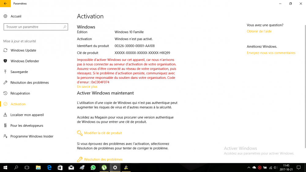 1. bonsoir, j ai mon pc acer windows 7 (a l origine),un membre de ma famille qui se trouve a l etranger l a achete et me l a envoye.Il a bien fonctionner durant une annee ou presque,mais apres il a commence a me dire que ma cle Windows allait bientôt expirer.j avais installe kmspico pour passer de Windows 7 a Windows 10,mais mes donnees etant limitees,et mon wifi tres lent j etais oblige de laisser tomber car ca prennait trop de temp.J ai un ami qui avait dit qu il pourrait l installer pour moi a partir d une cle usb ,il l a fait et ca a marcher un certain temp mais apres on m a dit une fois de plus que ma cle Windows allait bientôt expirer.....j ai telecharge un logiciel qui me permet de voir la cle pour la rentrer mais on m a dit que la cle n etait pas valide ,ensuite j ai essaye avec la cle windows7 qui sous le pc mais ca n a pas marche non plus.Maintenant je voudrais créer une cle pour installer Windows 10 et essayer mon ancien code Windows 7 qui se trouvait sur un petit morceau de papier sous le pc. J ai deja une cle 16GB,je voudrais savoir combien de GB que j aurais a telecharger pour créer la cle et si ca marchera?