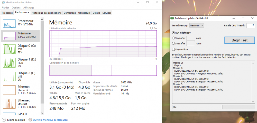 1. Donc j'ai essayé de désactiver le profil XMP mais pas de changement, vous avez d'autres idées en particuliers ?