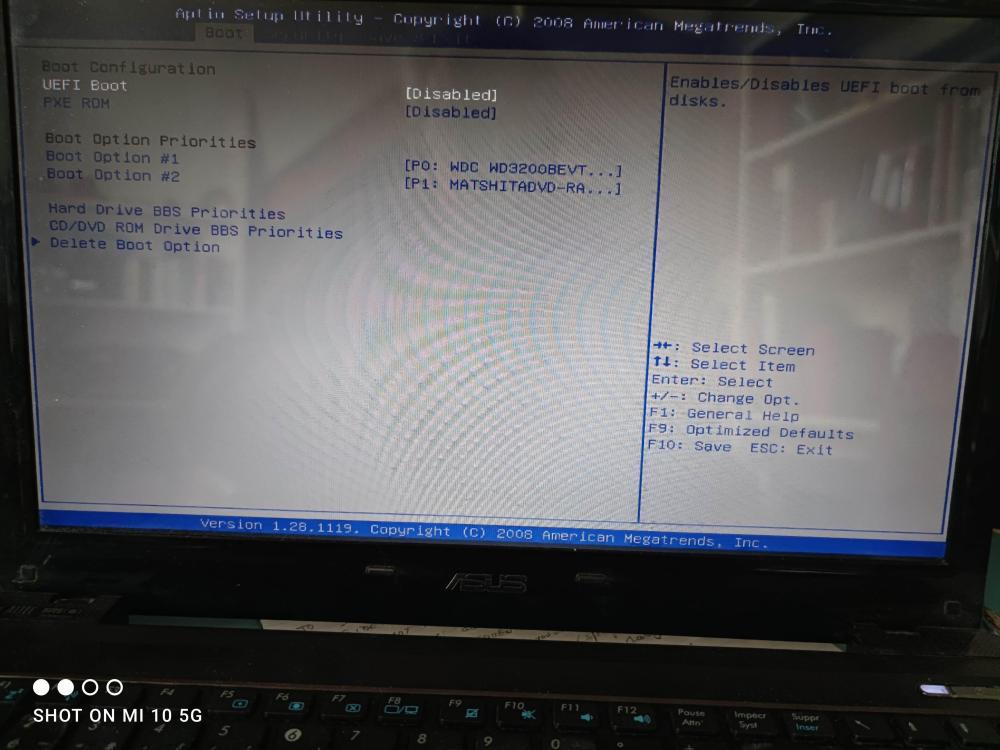 18. il ne voit rien du tout mon bios il indique boot option 1:WDC WD3200BEVT...... c le disque dur option 2:MATSHITADVD-RA.......c est le lecteur dvd mais la cle non
