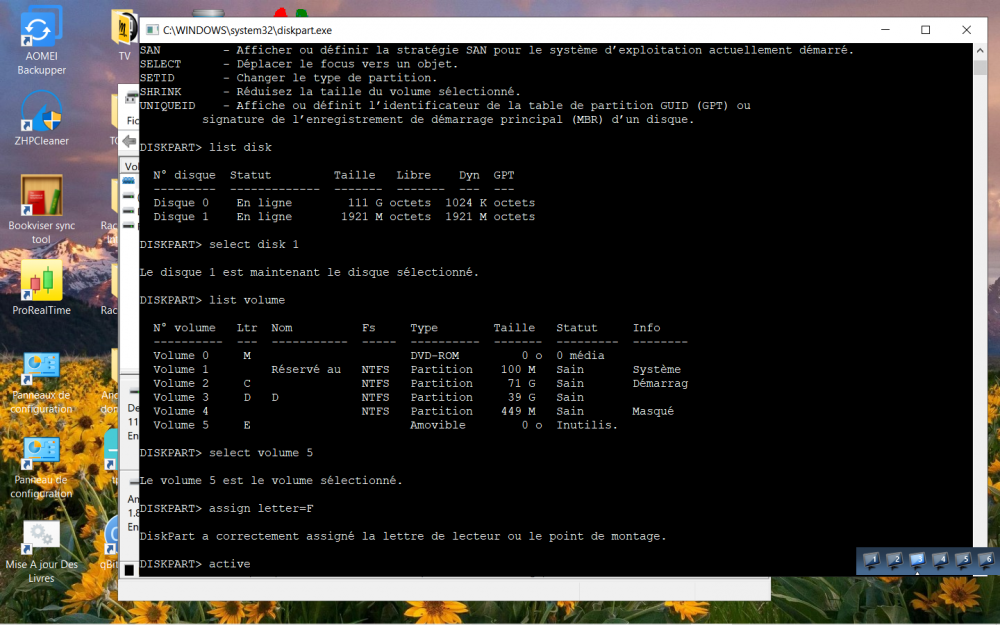 3. Bionjour à tous, Je me tourne vers vous, car après plusieurs semaines de recherche sur le web et d'essais, je commence à désespérer. Je suis sous windows 10, édition famille, à jour. J'ai une SD Card de 2 Gb qui contient des données importantes et dont la partition n'est plus accessible. J'ai essayé tout ce que j'ai pu trouver sur le web, sans succès. J'ai essayé DiskPart, AOMEI, MiniTool partition wizard, EASEUS, etc. Je peux changer la lettre du volume. Lorsque j'insère la SDcard, de temps en temps les données s'affichent, mais je n'ai pas le temps de copier les fichiers, car la fenêtre se ferme. Idem le MBR s'affiche. Auriez-vous une solution à me proposer ? Bonne journée à tous.