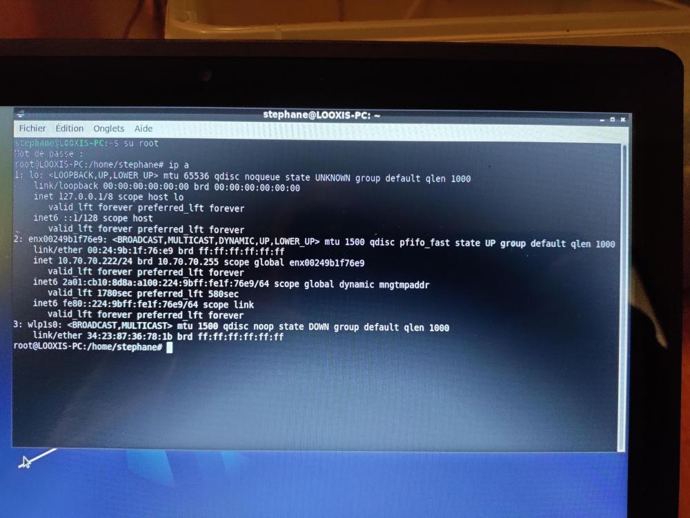 11. wlp1s0 ..... state DOWN je suis sur un autre pc, alors si tu veux le retour complet je peux mettre une photo peut-être ?