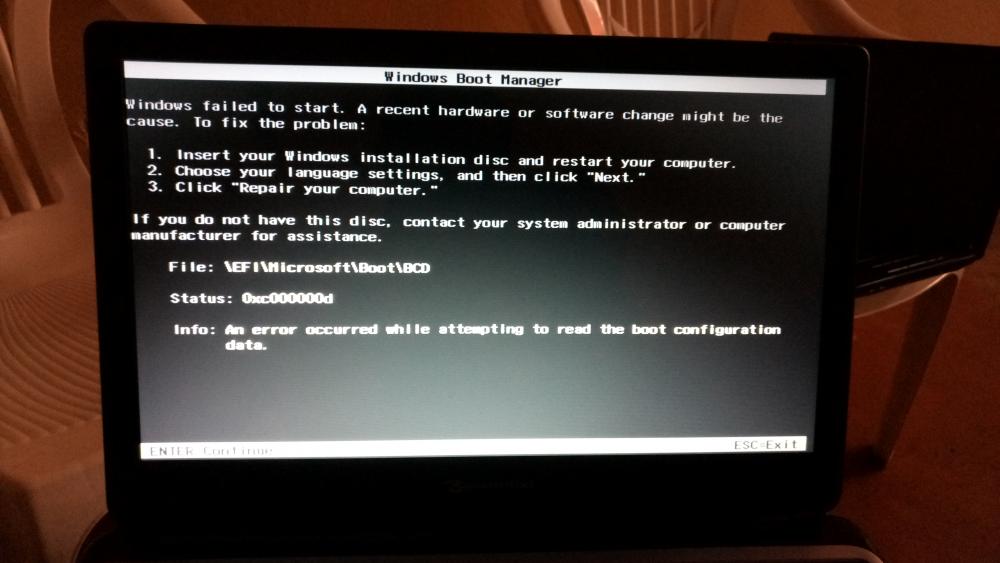 8. Mon laptop Packard bell refuse de booter pour installer un quelconque système, mon bios n'a pas le mode :Legacy Support. il y a uniquement le mode UEFI qui ne peut même pas être désactivable, moi je voudrais bien installer windows 7. J'ai essayer d'installer l'ISO utilisant Rufus mais quand j'essaie de booter on m'apporte un écran pareil (voir la photo jointe). Aider-moi svp