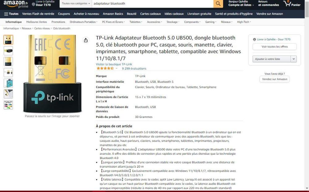 Coucou Delta j'ai voulu commandé le dongle bluetooth sur le site Amazon m'est impossible. Je t'envoie une capture d'écran pour preuve. Bonne journée à toi. P.S. Dis - moi lequel des 2 autres je pourrais commander.