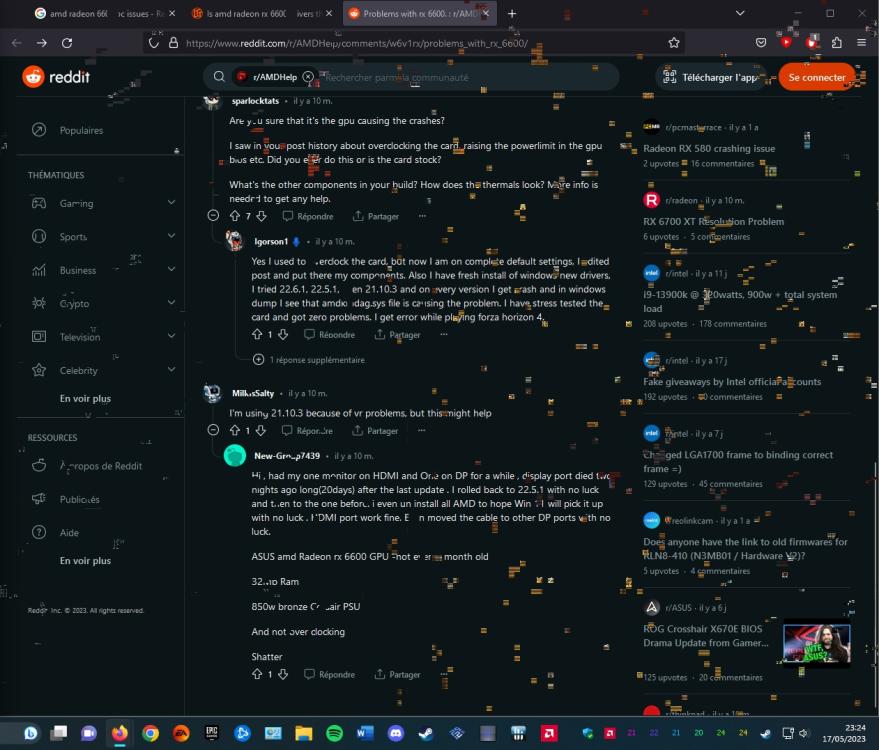 Hormis les jeux, j'ai eu quelques soucis sur mon navigateur qui était Opera GX. Je regardais des vidéos YouTube ainsi que des lives sur Twitch. Mais j'avais déjà la quelques soucis, surtout sur Twitch ou parfois, mon écran devenait noir ( comme si je débranchais mon cable HDMI ) pendant 1-2secondes, puis disparaissait. Sur Youtube, je n'avais pas ce probléme, tout fonctionnait parfaitement bien. Sauf une exception que j'avais aussi avec Twitch : il m'arrivait de jouer à un jeu ( FM / WoW... ) en ayant le lecteur incrusté sur mon écran de jeu pour qu'il soit visible dans le jeu, et lorsque je passais ma souris sur ce lecteur incrusté, j'avais des sauts d'image et donc des pertes de FPS dans le jeu.