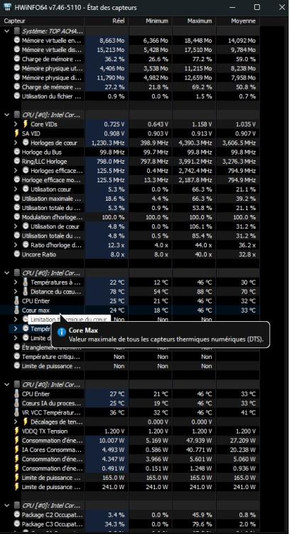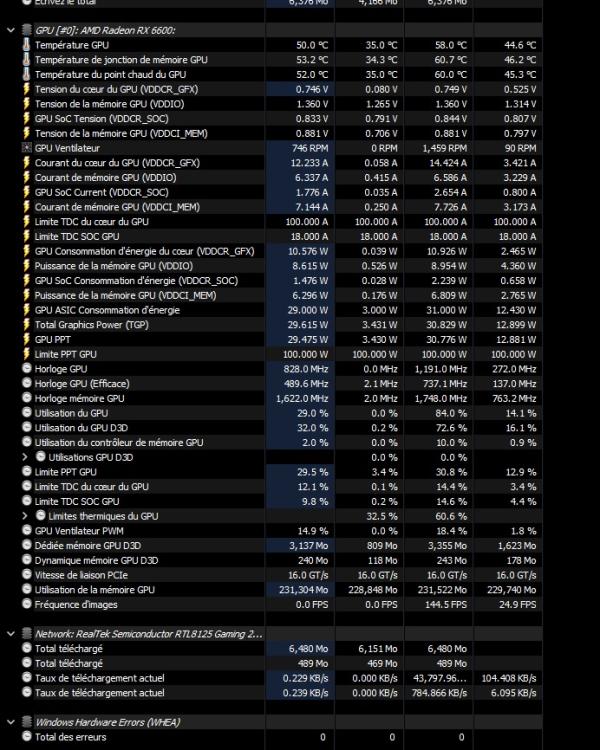 J'ai changé de cable ethernet, qui était quasiment mort. De même pour le cable HDMI, même si je ne pense pas que ca viens de là. Je suis passé sous Windows 11, mais je ne me rappele plus si c'était avant ou aprés le 1er freeze. Je n'ai aucun soucis de température ( CG ou Proc ) la tour ne dépasse jamais 25°, et le processeur va maximum à 35°. Pour la CG, ca monte rarement au delà de 65°.
