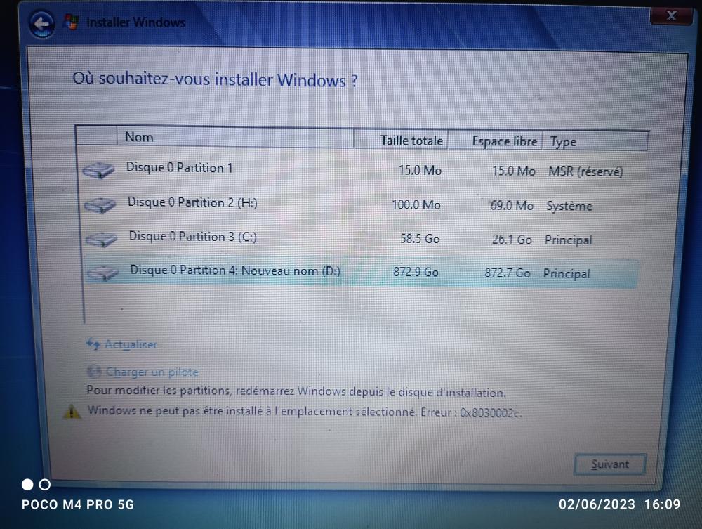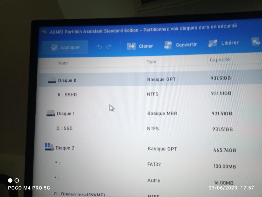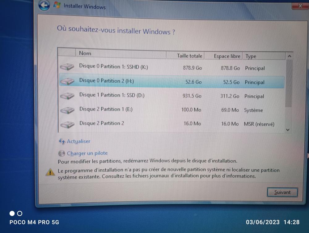 Si je teste a côté sur mon pc en lançant w7 depuis le pc il ne reconnaît pas le disque et si je crée une partition il me dit qu'il ne réussi pas à trouver de partition système, ... Bref des problèmes qu'on a déjà vu, c'est le serpent qui se mort la queue