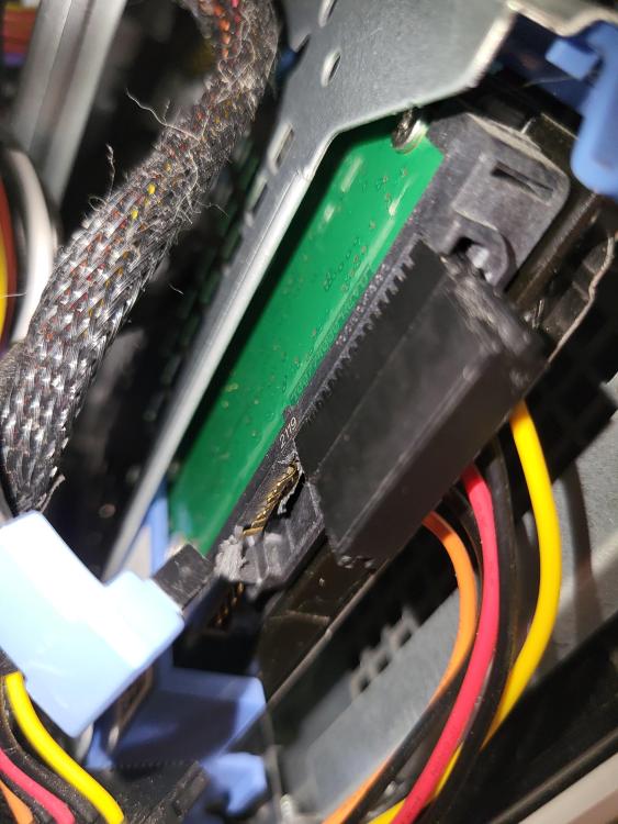 Cela vient du hdd la Connectique est tordue et il manque le morceau de plastique qui fait tenir le câble dessus