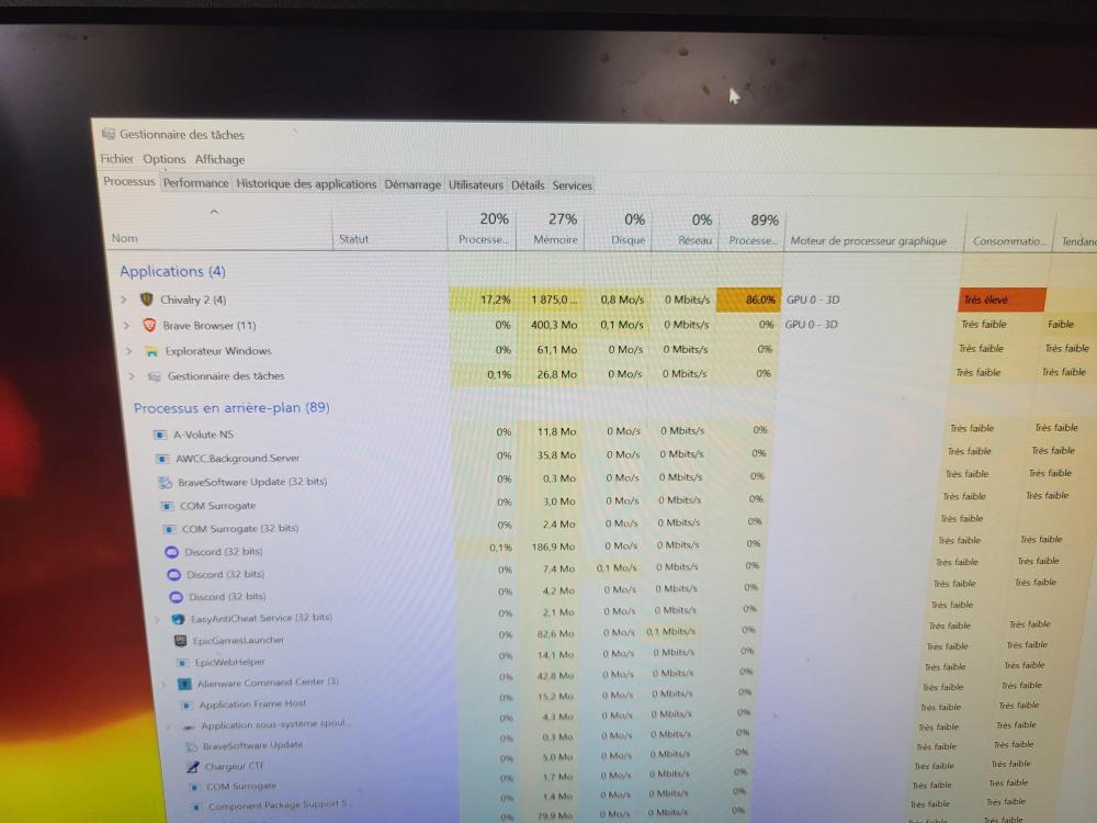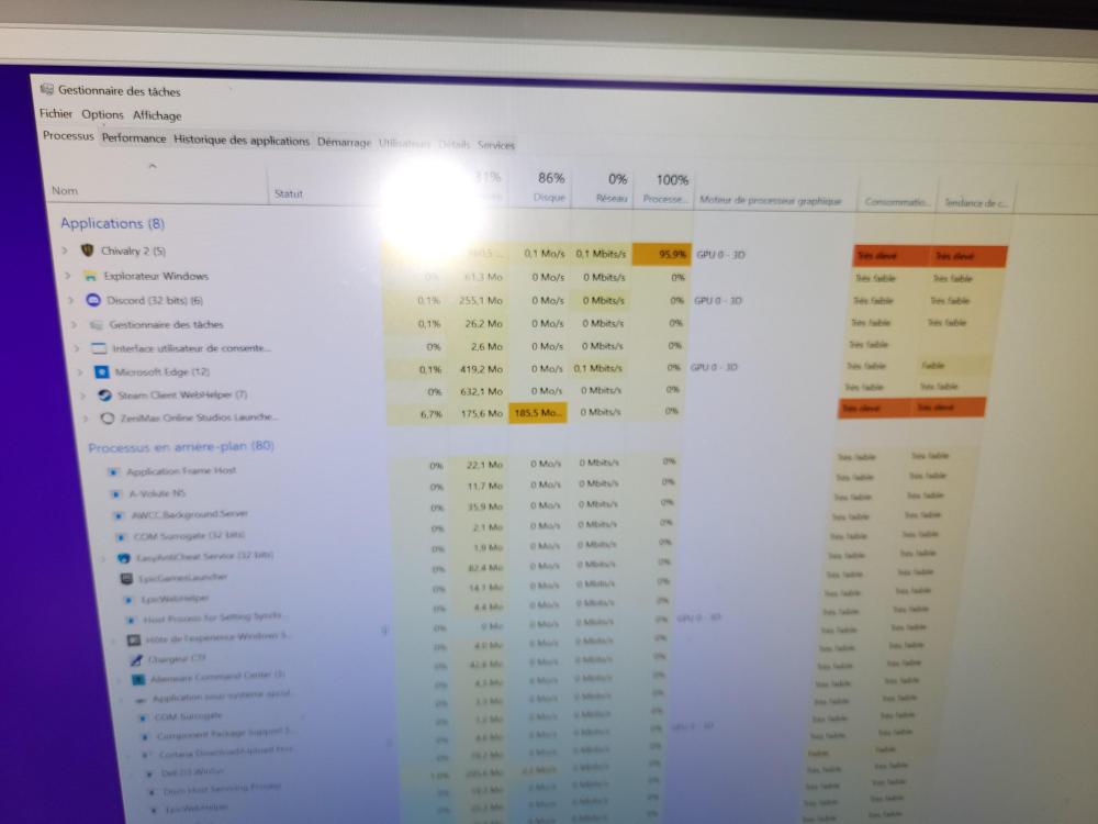 Voilà des informations sur l utilisation en ressource du pc. Aujourd'hui même le disque a des piques à 90 100