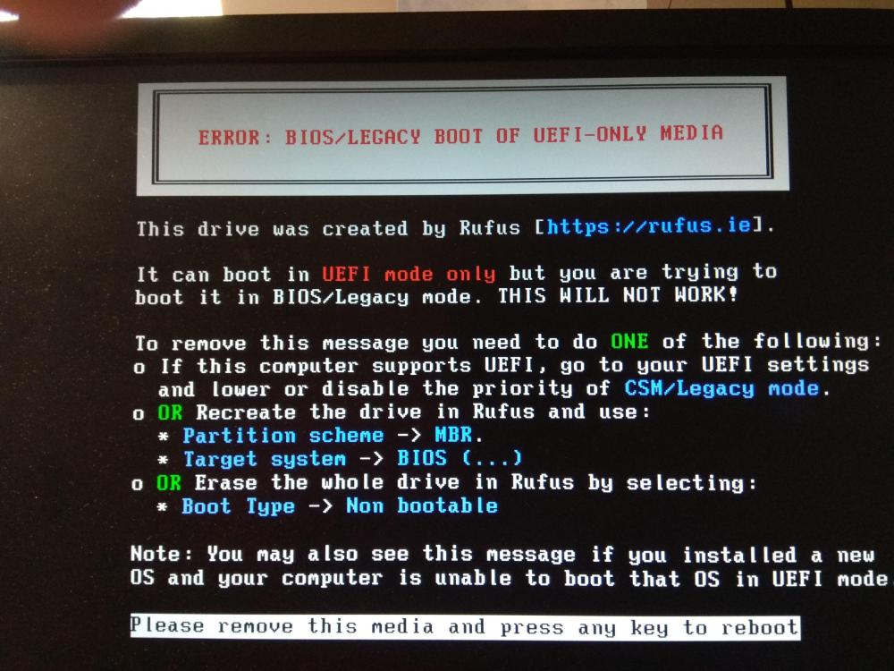 Bonjour, Nouvelle erreur mais quelque progrès. Il semble que dans le temps de mon dinosaure d'ordi, UEFI n'existait pas. Comme l'ISO est créé dans ce mode exclusivement, ça ne marche pas (voir photo de la note d'erreur). Dans le tutoriel <<Créer une clé USB d’installation de Windows [11, 10, 8.1, 7]>>, on dit : <<Pourquoi ce choix ? Pour vous faciliter la vie si vous souhaitez installer Windows uniquement en mode UEFI ! En effet, avec une clé USB hybride UEFI+BIOS, il peut être difficile pour des utilisateurs non expérimentés de savoir si l’installeur de Windows a été démarré en mode UEFI ou en mode BIOS hérité étant donné que la clé USB peut être amorcée dans ces deux modes au démarrage de l’ordinateur. Avec une clé USB UEFI, vous êtes assuré d’installer Windows en mode UEFI et non en mode BIOS hérité.>> J'en déduit que je dois créer une clé hybride et que ça ne causera pas de problème lors du démarrage de Windows avec cette clé vue que j'ai le mode BIOS seulement. Je vois aussi que lors de la création de la clé avec Rufus, je dois presser les touches ALT + E pour activer le mode hybride. Est-ce correct? Je préfère vérifier à mesure puisque tout ça est très time consuming comme on dit! Merci pour ton aide. -