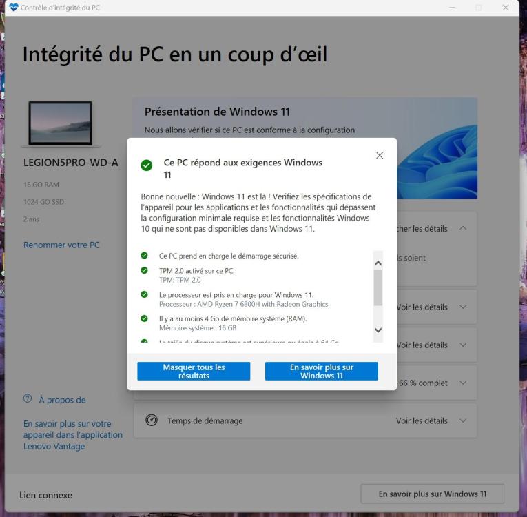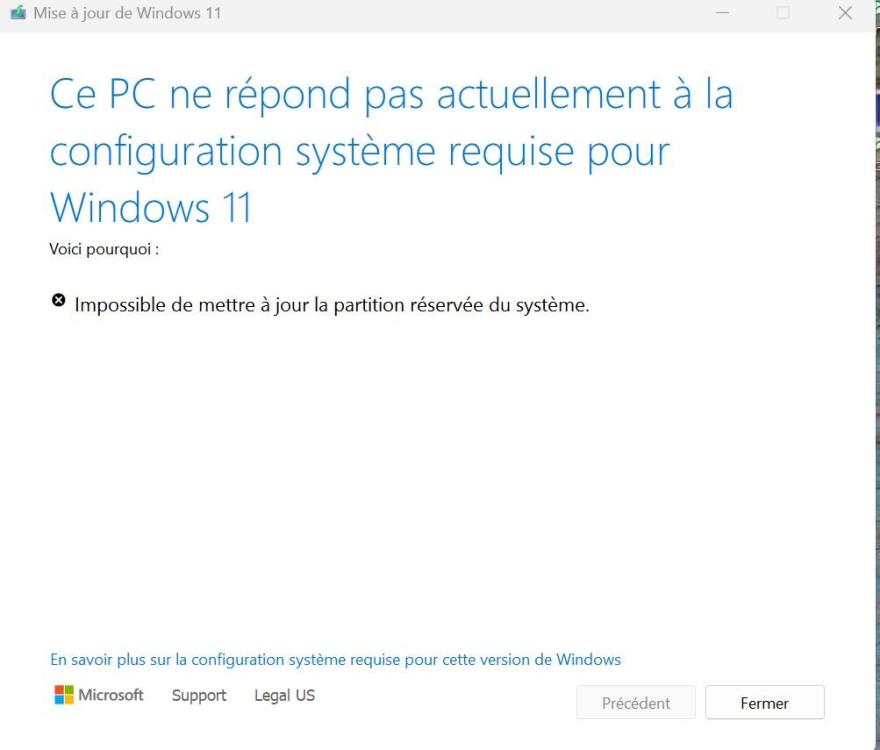 3. Bjr, j'ai un PC Lenovo Legion 5 Pro avec Ryzen AMD et SSD 1 To (Partitions GPT, NTFS, Fat32) pour les besoins lors des installations sur le PC sans OS au départ... A l'aide du support Lenovo on a installé à l'époque Windows 10, puis mise à jour effectuée vers windows 11 actuellement version 23H2 (build du système d'exploitation 22631.5624);mais impossible de mettre à jour vers la version 24H2 ! et ce malgré que le pc répond aux exigences de windows 11 ! Problème d'espace Partition Réservée ou Bios-UFEI ? L'assistance Lenovo n'a pas su me répondre que de réinstaller windows ! MinitoolPart image disks 2025-09-01_142949.bmp