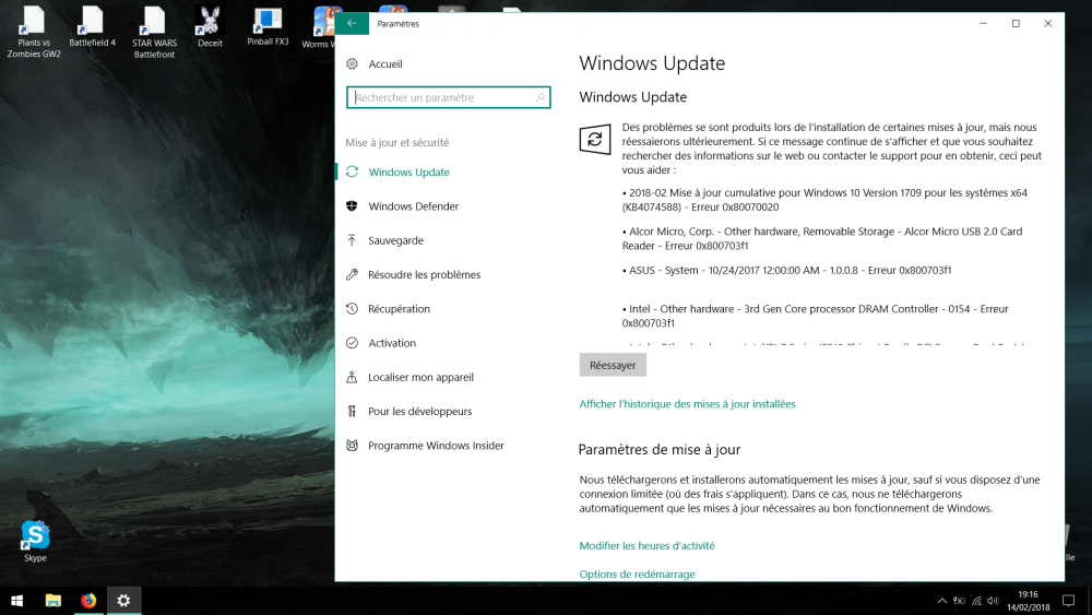 Ensuite j'ai tenté de réinitialiser le pc pour réparer les erreurs windows mais encore échec donc je me retrouve avec un pc sans aucune mise à jour ni carte graphique.