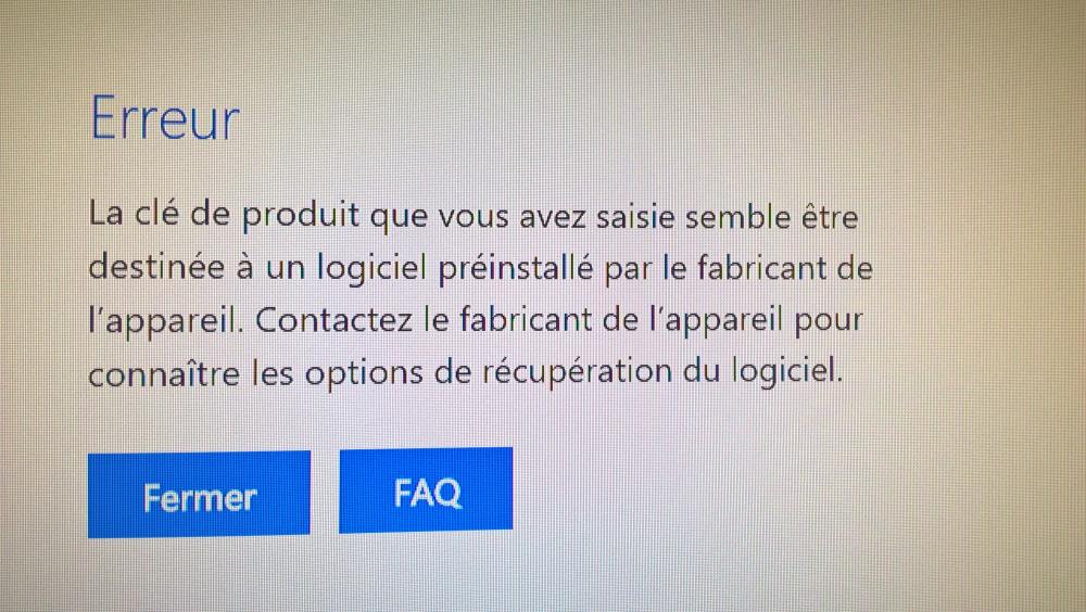 Sur l'étiquette du pc, il était bien en Windows 7 Home premium OA. Et quand je vais sur le site de Microsoft pour récupérer une copie avec ma clé de produit, ils n'en veulent pas et me donne un message d'erreur à la place ... J'ai déjà essayé les 3 options sans grand succès, je vais recommencé de suite. Mais sinon depuis, début Février, en suivant vos tutos, j'ai fais pas mal de manip pour pouvoir accéder au bios et tout çà, donc, faudra peut-être que je remette tout çà en ordre ?