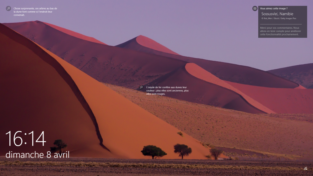 Bonjour, j'étais bloquée sur la même image aussi, change ton option en diapo pour commencer, puis cliques simultanément sur les touches Win + L (tu reviendras sur l'écran de verrouillage), retournes dans les paramètres puis remet Windows à la une. Cà a fonctionné pour moi