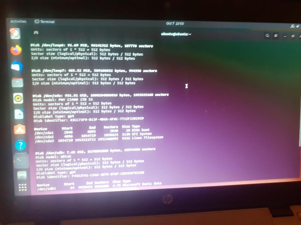 Ci-joint la photo du partitionnement lors de la 1ère installation