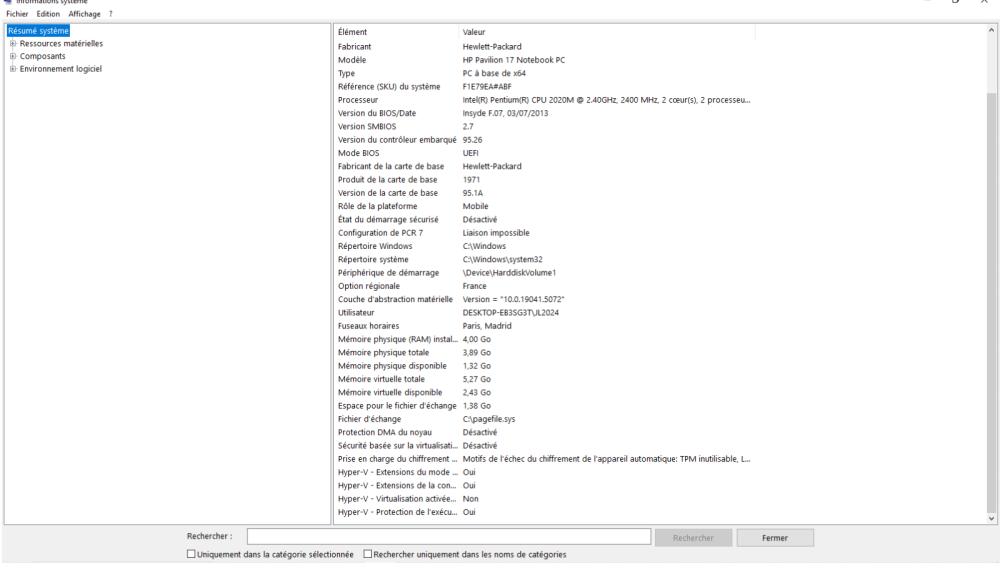 Bonsoir, Non je n'ai pas de dvd support, lorsque j'ai acheté ce pc W8 était installé d'office. Voici les captures écran demandées, Au plaisir de te lire, Kh38