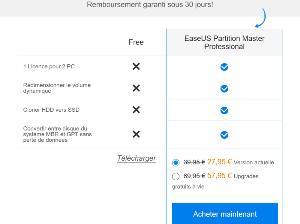 Bonjour je ne vous comprends pas ? vous me parlez de Ease US ???? alors que vous me dites que c'est payant donc en copie les 6 phases avec l'edition Free mais dans celle ci il n'y a pas le redimentionnement des partitions listée dans la partie Free ...............