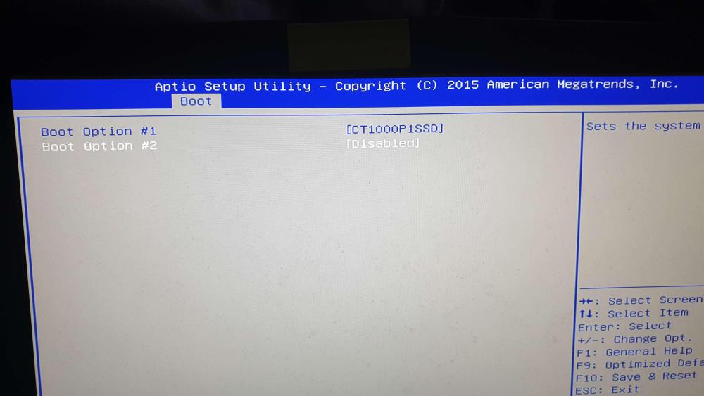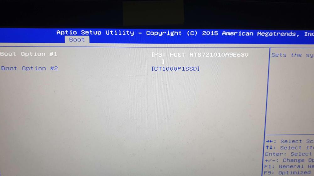 2. Voici les photos des menus du bios et du boot. Je constate qu'en UEFI, il n'est pas possible de distinguer le SSD du HDD