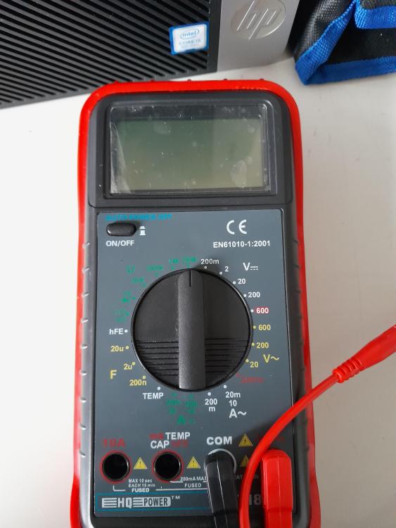 4. @Delta J'ai trouvé un multimètre, sur quelle valeur dois-je le mettre et à quel endroit de la CM dois-je pointer pour savoir d'où vient le problème ? (je mets une photo du multimètre ainsi que de la CM pour que vous m'indiquiez) J'ai d'ailleurs mis le multimètre sur une valeur aléatoire et pointé sur une petite puce sur la CM et à un certain endroit, ça démarre l'ordinateur, je n'ai pas d'affichage et le ventilateur se met progressivement à tourner à fond mais il se fait au moins à tourner, serais-je sur une piste ?