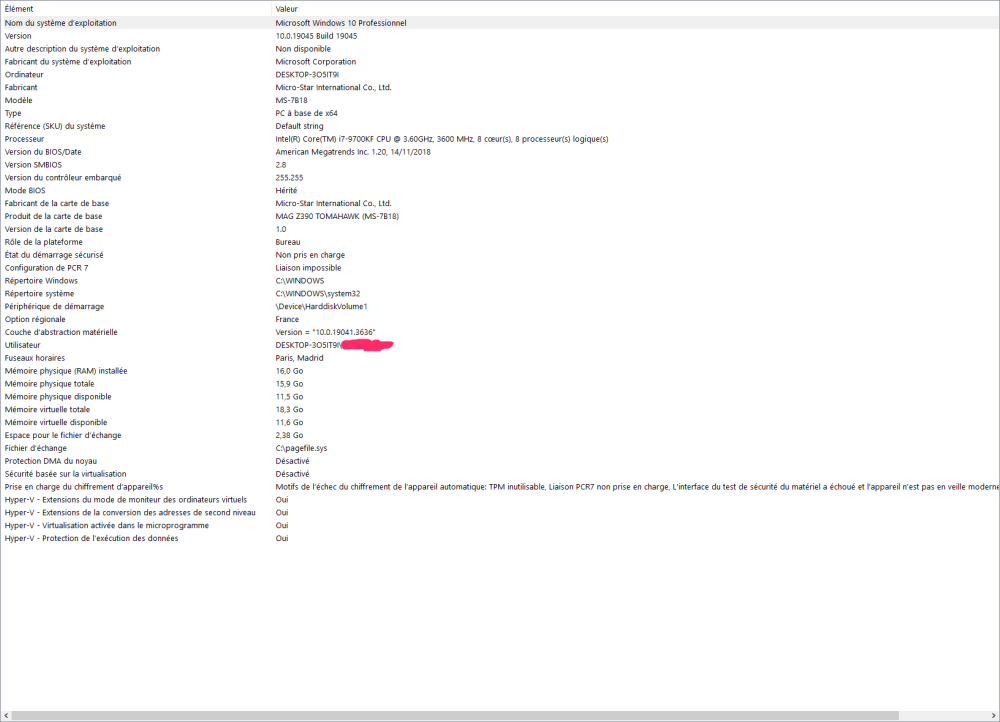 2. J'ai testé les deux barrettes de ram 30 passes pour chaque ram pas d'erreur le pc à reboot entre les deux quand j'ai arrêté le programme. J'ai re fait sfc/scanow . Fichiers corrompu et réparés. Comme d'habitude. Depuis il n'y a pas eu de reboot . Y'a il une possibilité que cela vienne d'une maj windows car il y'a une maj que j'ai jamais pu effectuer depuis des mois. Même dans les précédents windows avant les manip (KB5034441) erreur 0x80070643