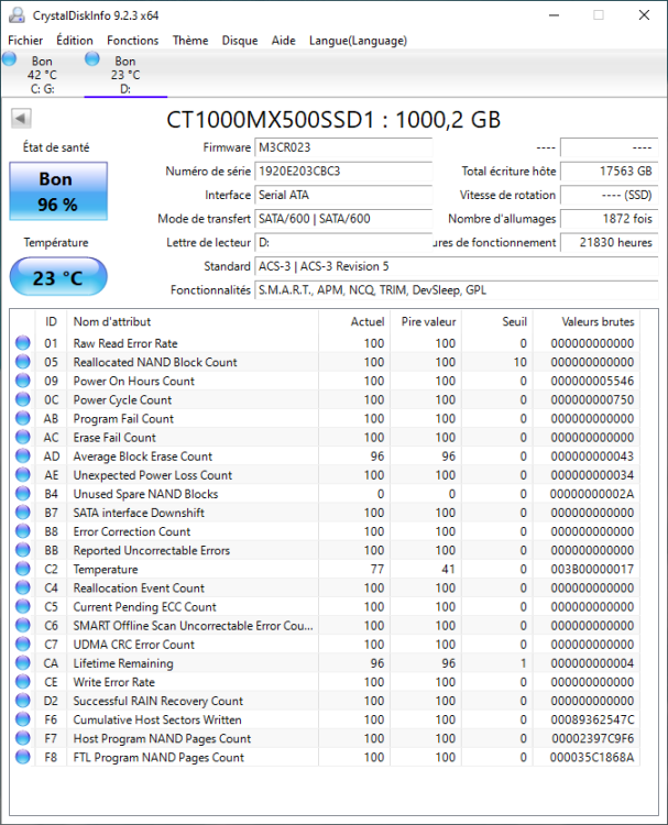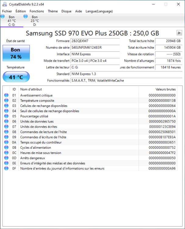 voilà, j'ai également deux autres disques HDD de stockage mais ils sont débranchés depuis plusieurs jours (je pensais que le problème pouvait venir de ces derniers mais ça n'a rien changé.) -