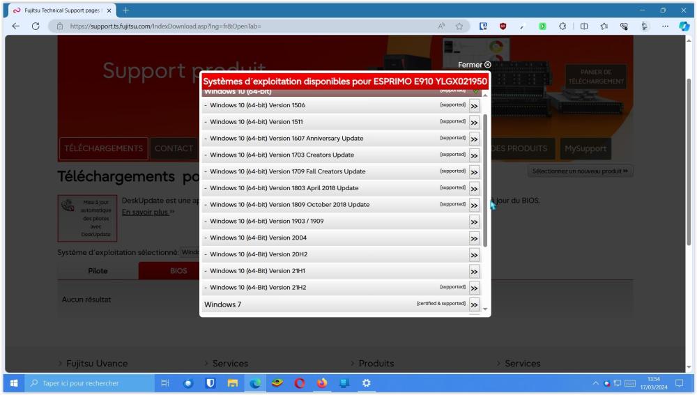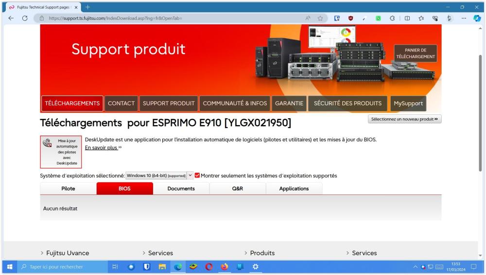 il est dit sur le site de fujitsu qu'il n'y a pas de mise à jour existante pour ce bios. (2 copies d'écran jointes).