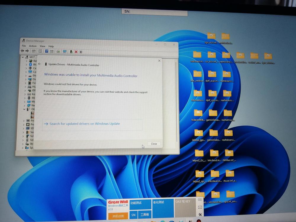 Après avoir réinitialisé tout fonctionne avec les drivers installés avec Drivers cloud sauf le périphérique d'entrée et surtout le périphérique de sortie (en gros pas de son ). J'ai tout essayé (Drivers cloud,Driver Booster , même DriverPack) mais rien n'y fait pas de son. Je suis allé sur le site du constructeur (SGIN.tech) j'ai installé leur image de windows ainsi que leur dossier de drivers pour régler ce problème de son mais toujours pas. Ça fait 2 jours et je suis au bout du rouleau. ( Ci joint les images des drivers constructeurs qui ne peuvent pas être installés)