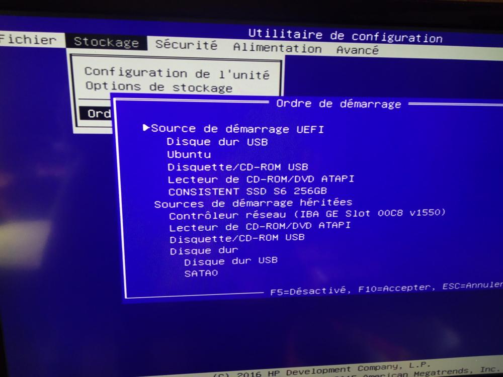 15. Ok, mais je dois changé l'ordre de démarrage dans le bios, lequel je choisi?