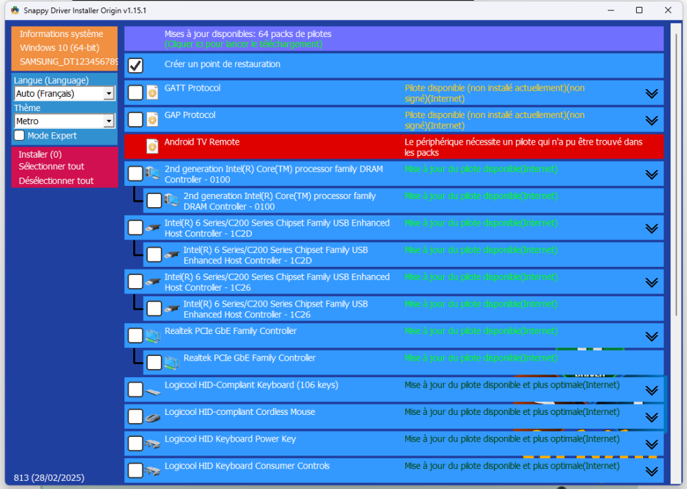 7. Voilà le résultat : est-ce que je peux tout sélectionner pour mettre à jour ? je remarque qu'il me note Windows 10, alors que je suis bien passée à Windows 11 avec la méthode Flyby11 ? Merci pour vos conseils ;