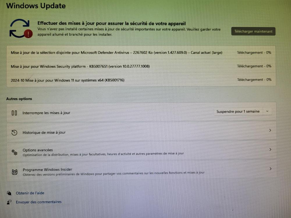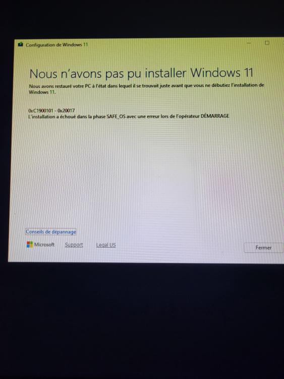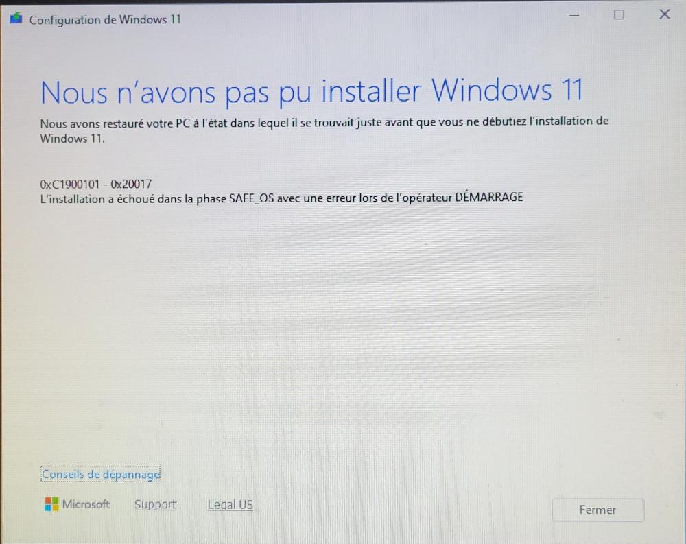 L'opération se termine malheureusement toujours par la désinstallation de la mise à jour à la suite d'un échec.