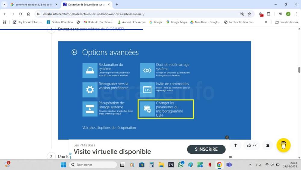 Ok Delta. je dois retourner dans le bios apres installation de windows 11 via rufus pour réactiver le secure boot. De ce fait je ne passerai pas par les options avancées. Quel est donc l'autre possibilité pour acceder au secure boot sur mon Lenovo Merci