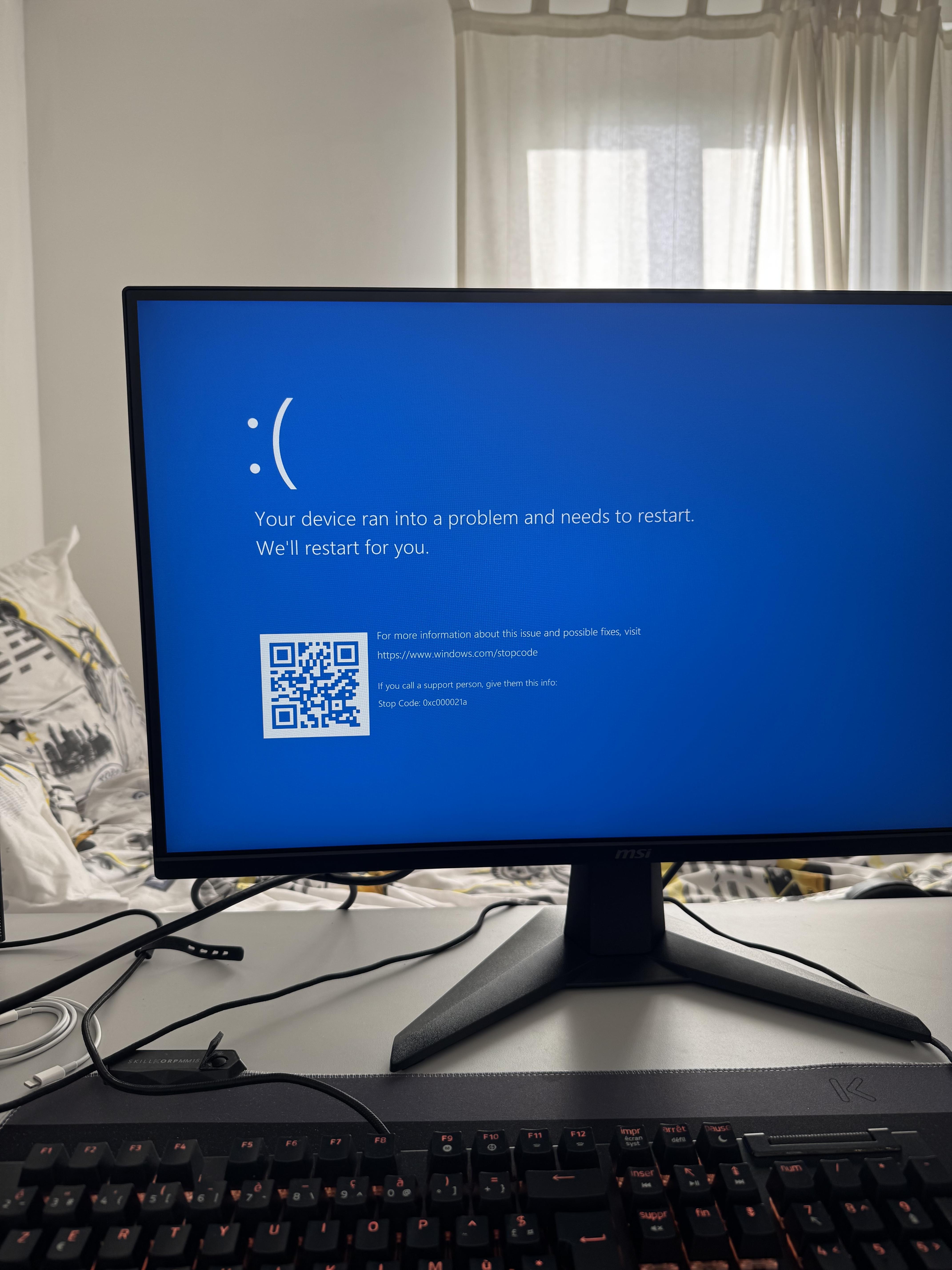 J'ai donc créer une nouvelle clé bootable avec Windows 10 au début mais blue screen (voir image 0 - code erreur 0xc000021a).