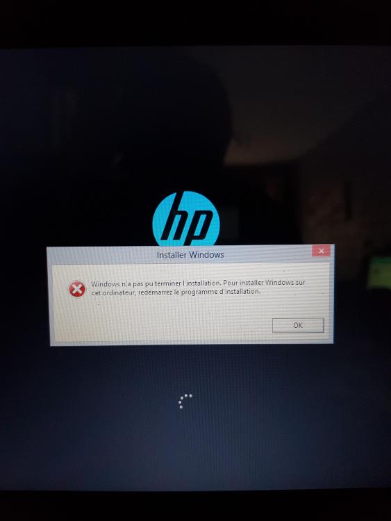 Bonjour MateLeot. J'y ai cru un peu vite. Le programme s'installe mais redémarre vers la fin et recommence tout a chaque fois. J'ai essayer avec une clé bootable faite par rufus et aussi avec une faite par l'appareil créate de Windows mais rien a faire.Ca ne pourrait pas être un problème de partition ?. j'ai partition1_ récupération, partition 2 _système, partition 3 _mbr, partition 4 _principale et partition 5 _récupération aussi.. Pourquoi faire simple.