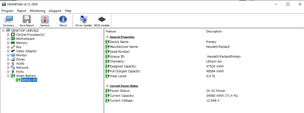 6. Bonjour, je viens de racheter une nouvelle batterie pour un pc portable (compaq presario CQ71), cependant lorsque la batterie est rechargée à fond, windows m'indique qu'elle est à 69%. J'ai donc fait un calibrage de la batterie en la laissant se vider complètement avec le pc allumé, mais lorsque je la recharge à nouveau, elle se bloque à 69% comme si elle était pleine.