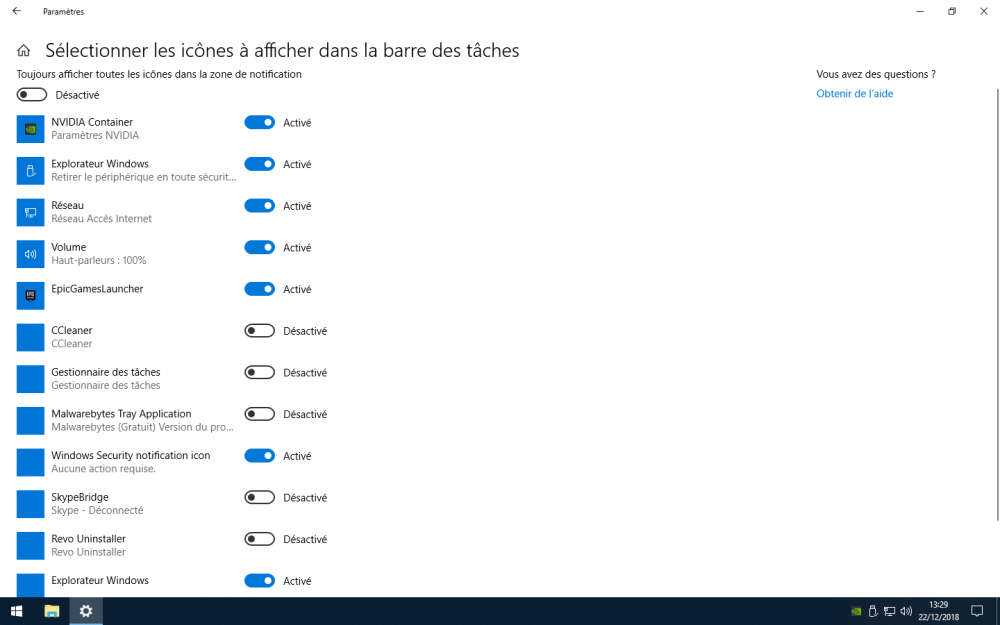 Je viens de faire la manip en mode sans échec, et windows defender n'est toujours pas revenu dans la barre des taches, alors qu'il est encore activé au démarrage du pc et dans les icones de la barre des taches comme sur la photo d'avant