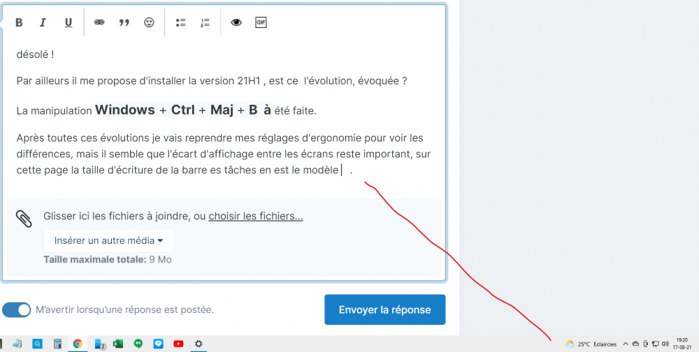 La dernière procédure que tu me suggères je l'ai déjà appliquée, en tentant bien des combinaisons car elles sont multiples taille, tout agrandir, zoom (dans chrome) etc .... Devant mes echecs cosécutifs je me suis permis de m'exprimer ici, avec mon language pas toujours orthodoxe !