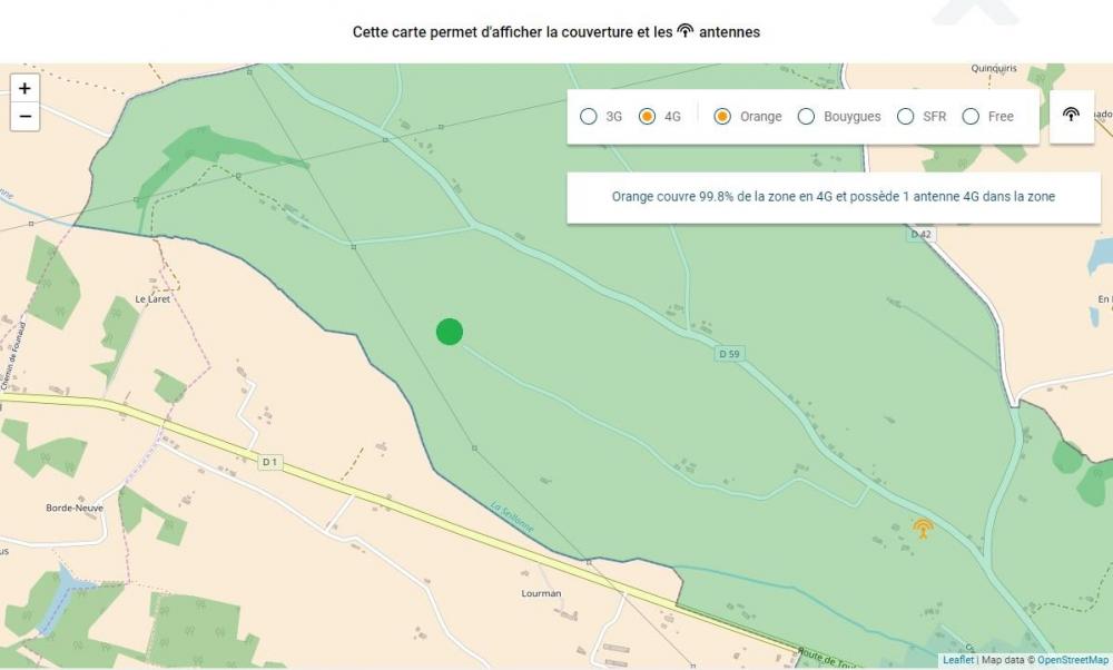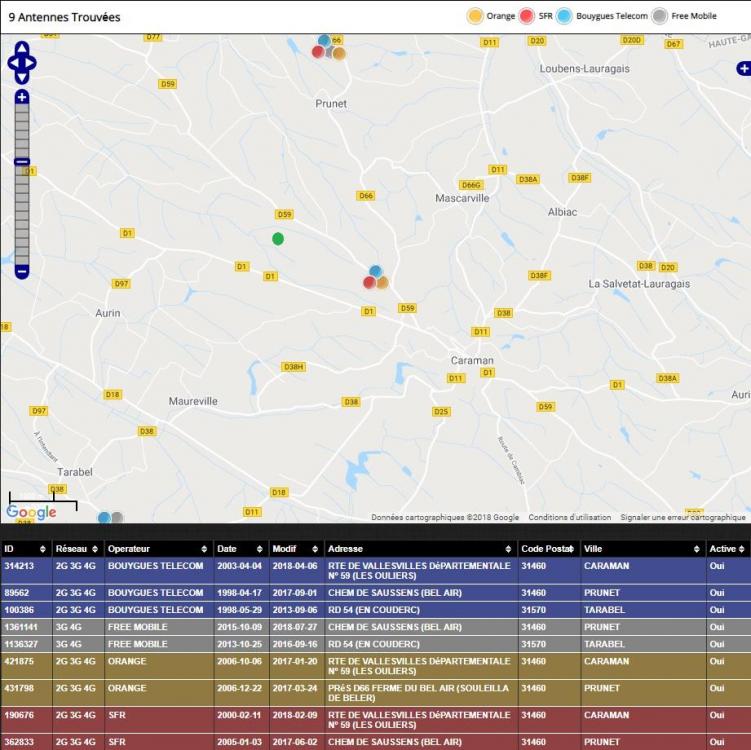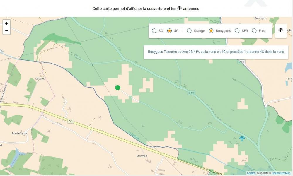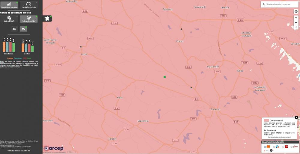 Ci-joints des images des antennes avec l'emplacement de mon habitation (en vert) et de ma couverture 4G