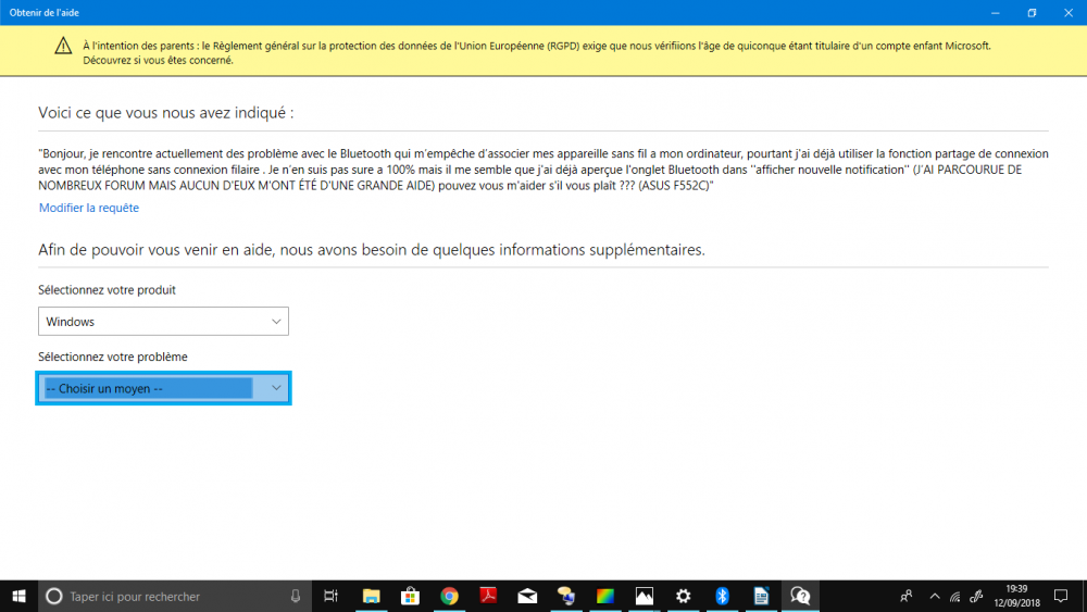 je décide alors de réparer le problème comme il ce doit en lançant l'utilitaire de résolution de problèmes