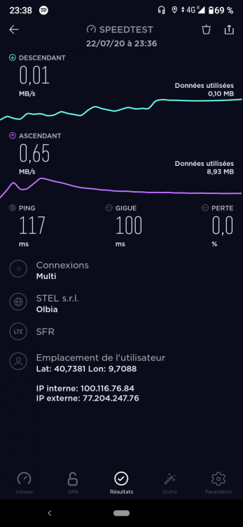 4. Bonjour, Je suis actuellement en vacances à l'étranger en sardaigne et je trouve ma 4g anormalement nulle alors que pourtant je capte très bien et ma famille me disent qu'ils n'ont pas de problèmes de débits. Je me trouve proche de olbia, forfait réd by sfr 1go illimité x40 Téléphone : xiaomi mi a3