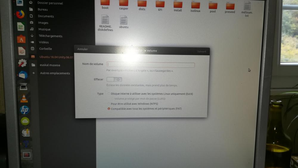 3. Bon, ben suivant vos conseils, j'ai téléchargé à nouveau le fichier Ubuntu sur le tuto du crabe https://lecrabeinfo.net/creer-cle-usb-installation-bootable-live-cd-linux-ubuntu-debian.html et je l'ai copié sur une autre clé. Et ça a marché! Bon, j'ai du batailler un peu: quand je faisais f9 pour choisir l'ordre du démarrage, le système ne "voyait" pas la clé. Alors je l'ai enlevé et remise, tout en faisant des allers retours "échap" F9 et au bout d'un ou deux fois, la clé est apparue (Hardrive USB, il me semble), je l'ai sélectionnnée et bingo, ça a booté sur Ubuntu. Merci à vous pour votre aide, en particulier zelandonii et calisto06 J'ai encore une autre question, mais ça ce sera une autre discussion. Bien cordialement, Antton