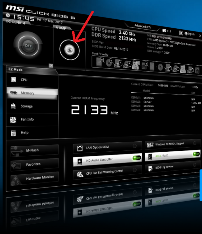 Bonjour à vous =) Ta ram est surement "bridée" de base, le plus simple serait d'activer le mode A-XMP si ce n'est pas fait. Juste accéder au BIOS, mettre l'A-XMP sur on et sauvegarder les réglages =)