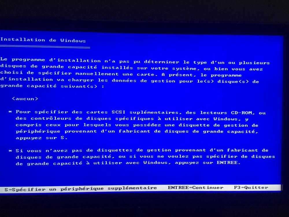 18. J'ai essayé en intégrant les driver dans l'ISO et j'obtient une cette fenêtre (photo 1) et lorsque je fait entré je retrouve la fenêtre avec "un problème a été détecté..." J'ai jamais vu ça ...