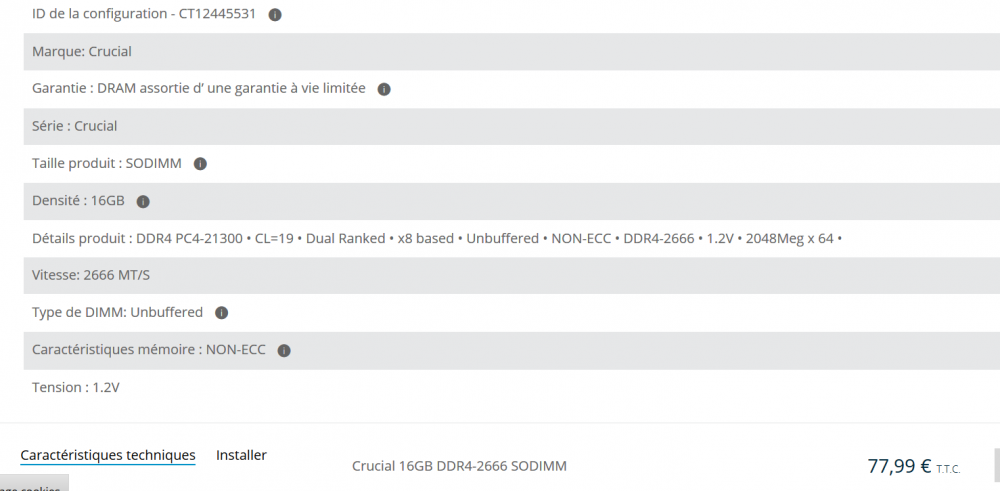https://gyazo.com/2de07b743cff64751570c31047033bec J'ai bien un deuxième emplacement libre sous le pc et d'après le scan fait sur crucial je peux aller jusqu'à 32GB. Après d'après le BIOS Dell, la carte est en single channel, unbuffered. En revanche je sais pas si le temps de latence doit être le même entre la nouvelle barrette de Ram et celle préinstallée sur le PC ou si ça change rien -